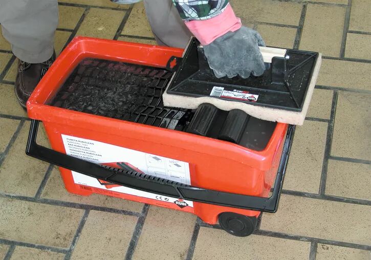 The RUBICLEAN SUPERPRO bucket is ideal for cleaning all types of surfaces. It is especially recommended for cleaning after ceramic tile installation work (grouting and delivery of work). The RUBICLEAN SUPERPRO bucket is made of injected polypropylene (PP) to offer the user a light and highly resistant bucket. It is equipped with 2 highly resistant, grooved wringing rollers, to facilitate the wringing operation, and thus achieve greater water evacuation, leaving the sponges with the optimal level of humidity. The roller supports are reinforced to give them greater resistance to pressure during repetitions of draining. The polypropylene (PP) draining grate incorporates a series of reinforcement points to provide it with greater resistance to bending, and is located in the upper part of the bucket, as well as a decantation tray that allows us to make better use of the water from the bucket. The polypropylene (PP) handle is located in a longitudinal position to allow for more comfortable and safe transportation. To facilitate cleaning the RUBICLEAN SUPERPRO bucket, the draining grid can be removed. It is equipped with 2 large wheels, made of polypropylene (PP), to facilitate the manoeuvrability of the bucket when it has been filled with water. The RUBICLEAN SUPERPRO bucket comes fully assembled, so the user can use it immediately. The maximum capacity of the RUBICLEAN SUPERPRO bucket is 24 litres, but its useful capacity (up to the drain rack) is 19 litres. The dimensions of the RUBICLEAN SUPERPRO bucket are 52 cm x 27 cm x 30 cm. RUBI offers professionals in the sector a wide and deep range for cutting, machining, placing and maintaining ceramics. Although RUBI has been the inventor of the manual ceramic tile cutter, today it offers a wide range of tools and supplies to provide quality solutions to the most demanding professionals.